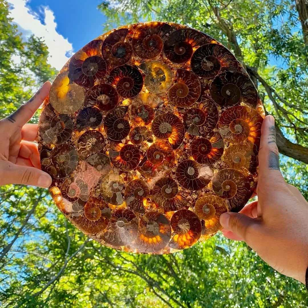 Elevate your space with this Natural Conch Fossil Disc Decoration, a Bohemian crystal-art piece that blends ancient textures with modern calm.