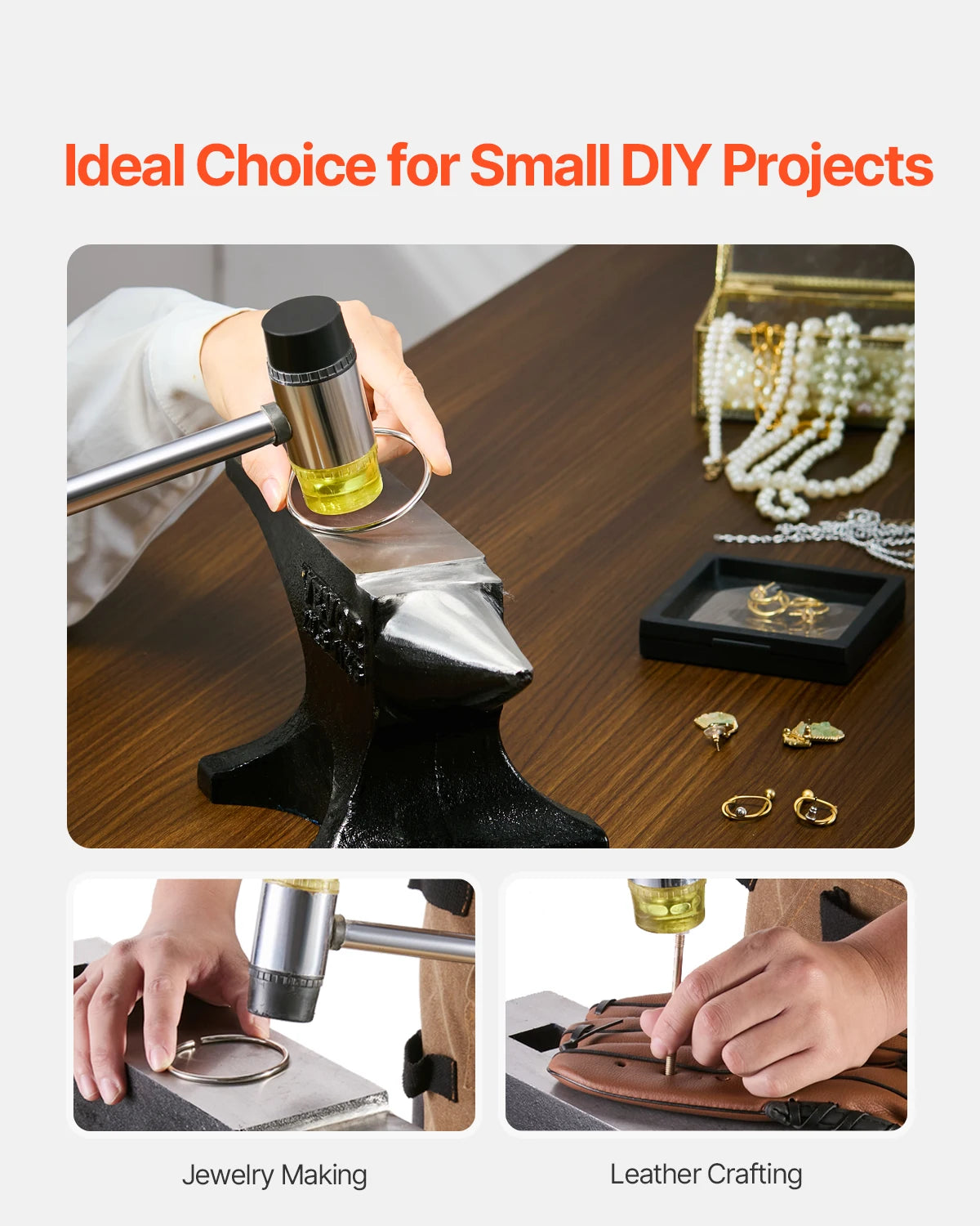 - At 25 lbs with a 12.3 x 2.5 in (312 x 64 mm) work surface, it’s ideal for riveting, flattening, and shaping small metals, leather, or jewelry.