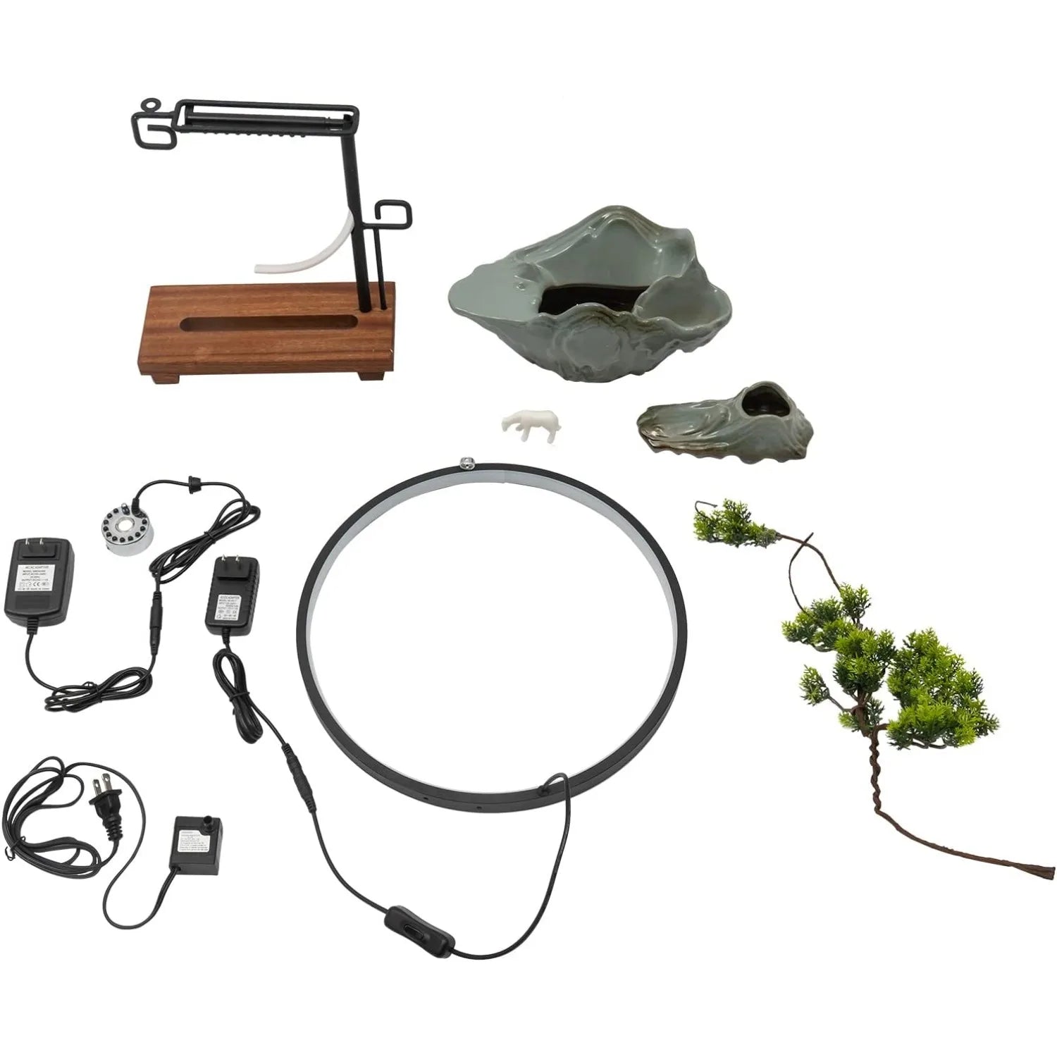 Bymaocar Tabletop Water Fountain With LED Light MistMaker Incense Holder