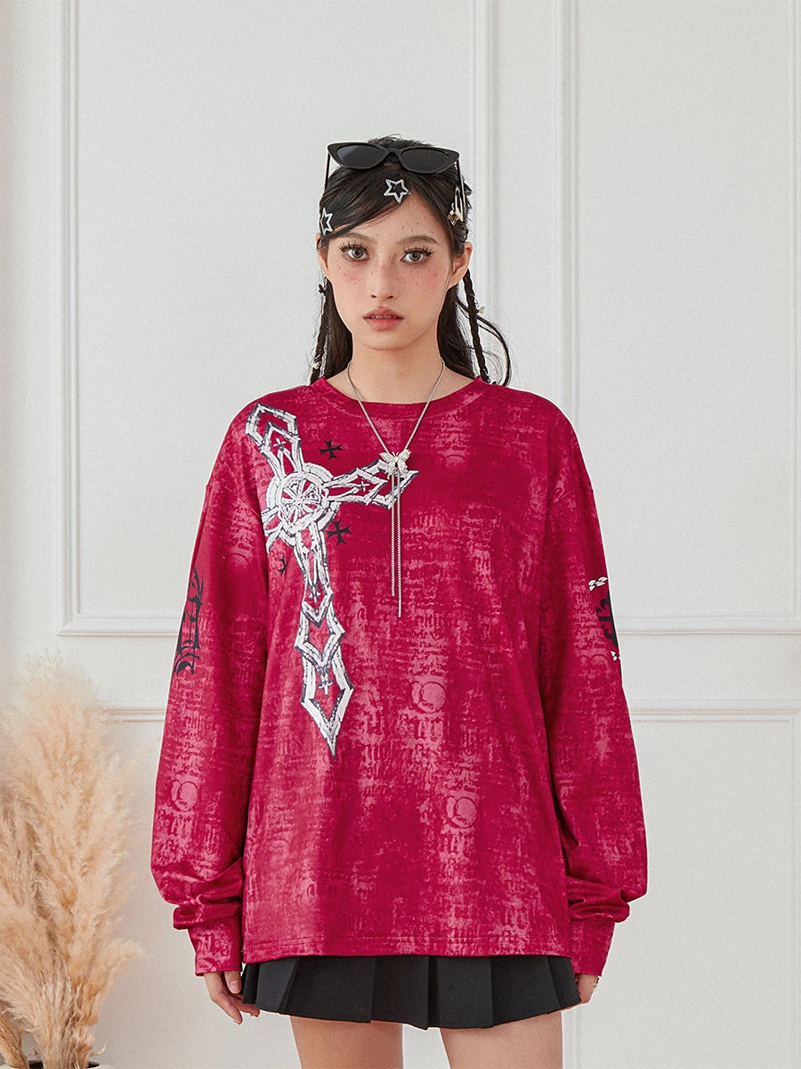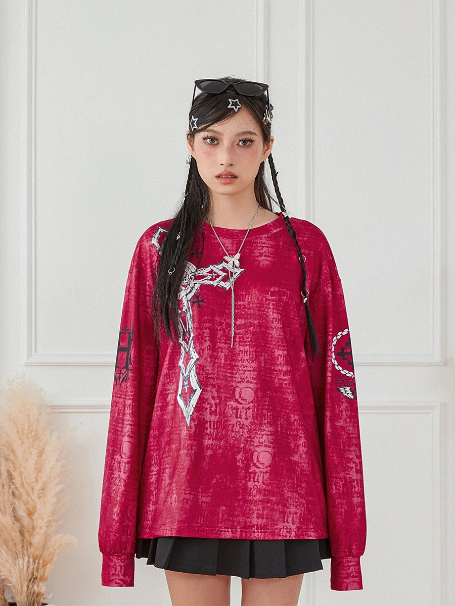 - Features a vintage Gothic graphic on a waffle-knit long sleeve with an O-neck, delivering a casual-meets-edgy silhouette you can layer.